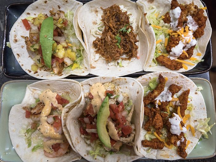 A few tacos to expect: buffalo chicken and pulled pork BBQ tacos.