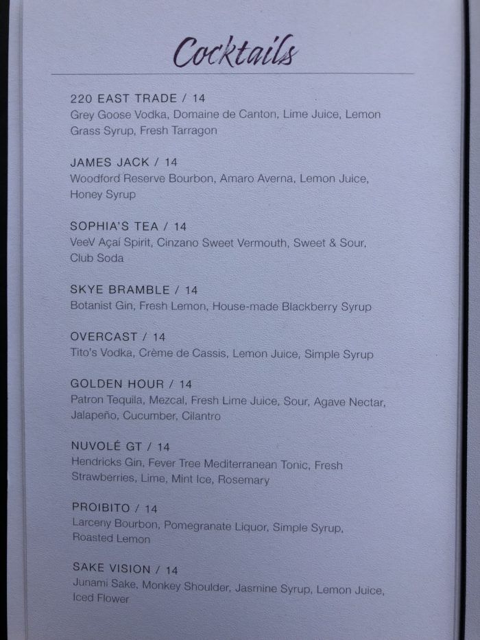The signature Nuvolé GT ($14) is a popular choice with a refreshing mix of Hendrick’s gin, Fever Tree tonic, strawberries, lime, mint and rosemary.