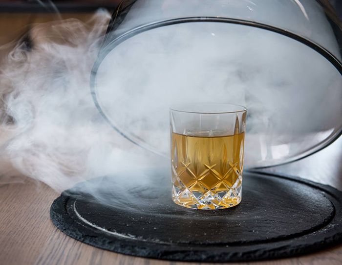 Waygu fat washed bourbon, slow ginger syrup, buckspice bitters, king cube, candied ginger, cold smoked ($16).