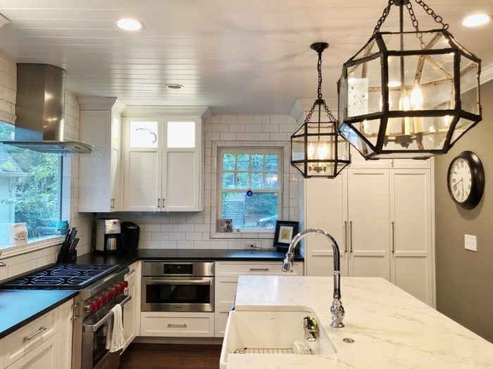 The home: The top two stories of the 3-bedroom, 3.5-bath home is 2,400 square feet, but the finished basement has added an additional 1,000 square feet. After the renovation, the home features a more open floor plan, two-sided gas fireplace, modern kitchen with white marble countertops, and an over-the-top basement entertainment area. Numerous large windows throughout look into the house’s private and wooded backyard, giving it a feeling of seclusion even in the middle of the historic neighborhood.