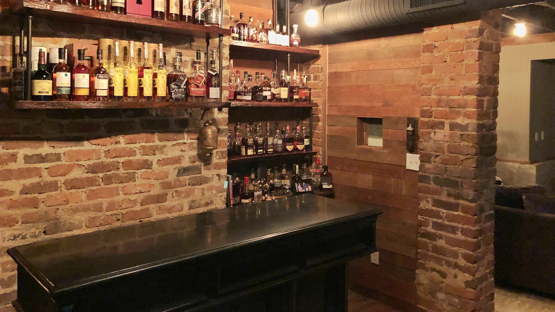 Basement bars: Before its renovation, the home’s basement was primarily used for storage. Today, it’s the owners’ favorite space. “We tend to congregate downstairs on any given night,” says Morton. It’s easy to see why. In addition to a beautiful wine bar featuring walls lined in bottles and custom-made white oak countertops, the space features a speakeasy-like bourbon bar that would rival any restaurant’s in town with hard-to-find bottles like WhistlePig The Boss Hog Black Prince and John E. Fitzgerald 20 Year.