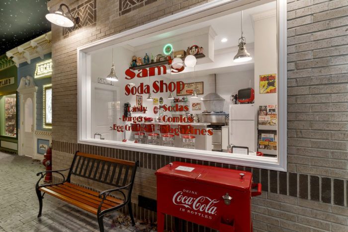 If you aren’t impressed yet (you are), there’s also a soda shop giving off a major retro diner feel.