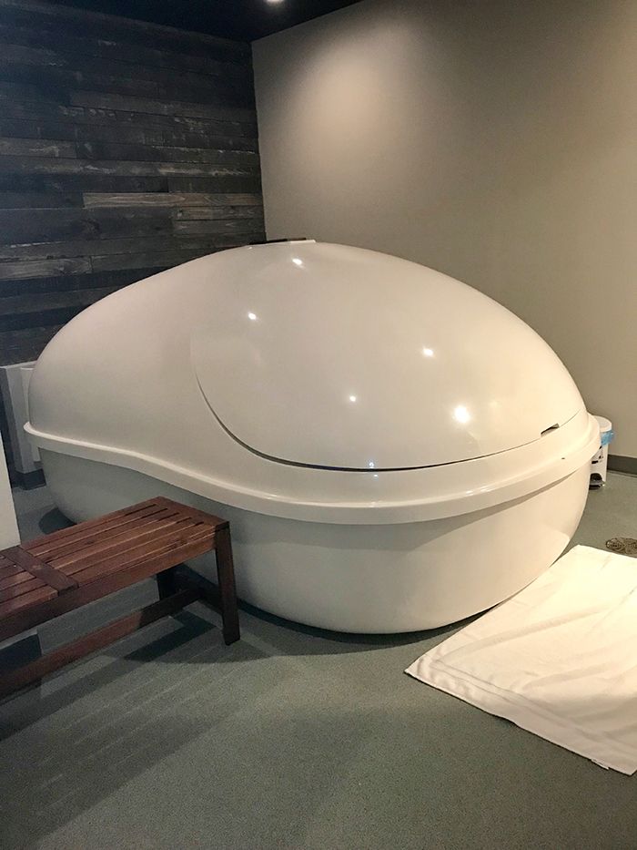 - If you’re too claustrophobic for the pod you can still float in a “float room.” It’s the same price but the water is not as warm.