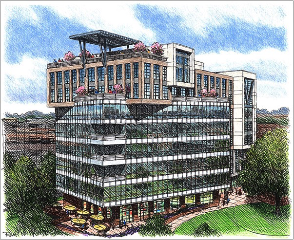 The development will consist of 130,000 SF of office and 10,000 SF of retail, apartment units, a potential boutique hotel and a large outdoor plaza that connects West Boulevard to the future Wilmore Centennial Park.