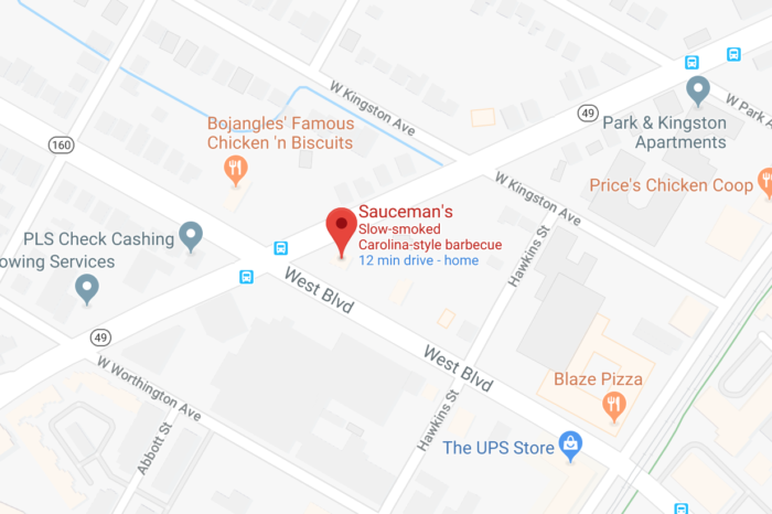 The site is bounded by West Boulevard, Tryon, Hawkins and the future Wilmore Park. It’s is the current site of Sauceman’s but don’t panic; the barbecue restaurant is relocating to a bigger space.