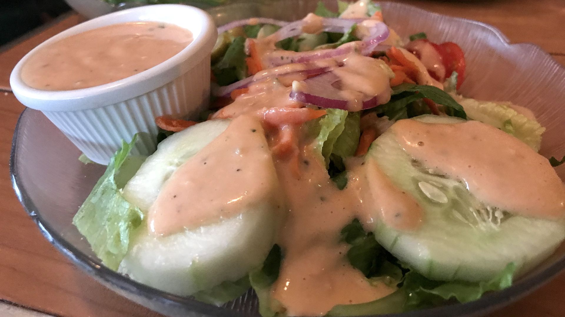 Best served on: Traditional salad topped with every vegetable they give you. Ask for extra cherry tomatoes, they never give you enough cherry tomatoes.