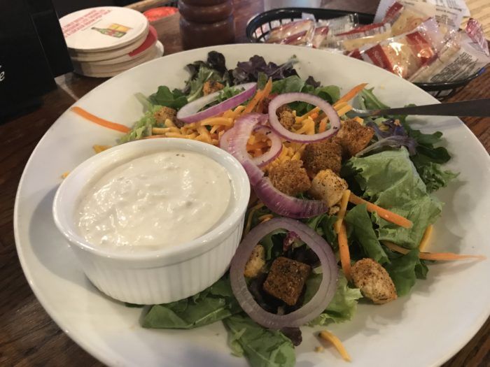 You can’t go wrong with any of Beef N Bottle’s homemade dressings, but their insanely thick ranch tastes best on their salad and on top of the free crackers they bring to your table.