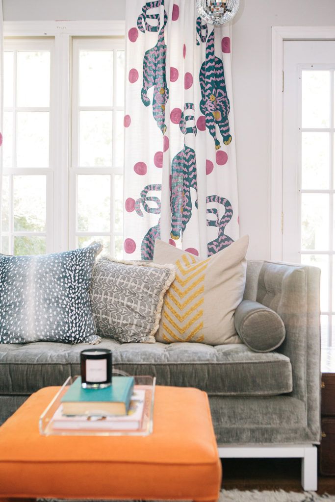 Family Friendly: “I’m sentimental,” says Sarah, pointing out decor from her family members around the house. Much of the home’s art and an antique record player are from one grandmother, while the 1970s pink Henredon sofa in the living room came from another. “We recovered it last year and my grandmother would not have approved of the pink velvet,” laughs Sarah. “But I wanted something fun.”
