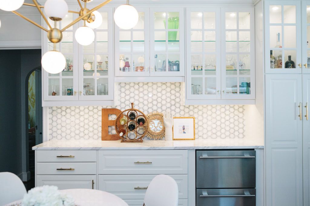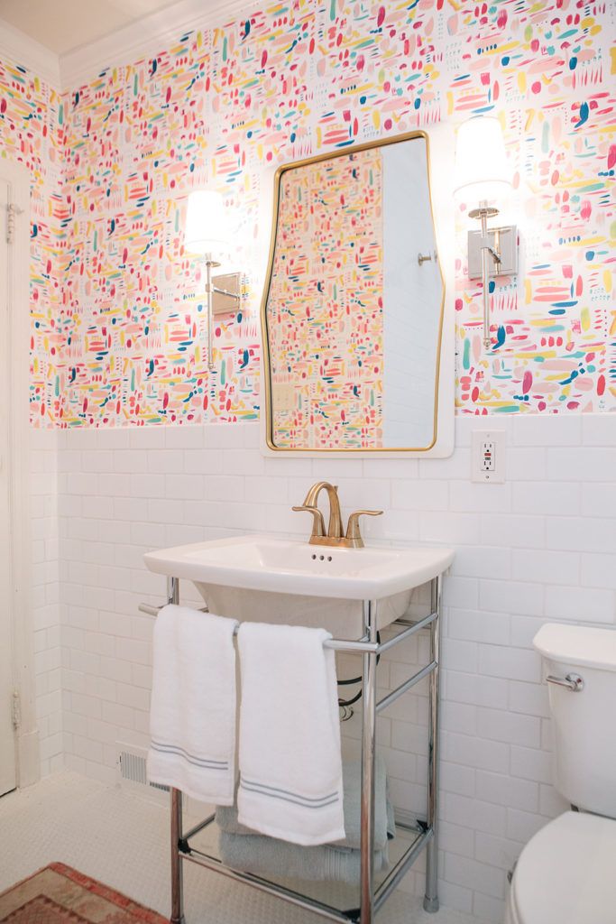 The Home: The three-bedroom, three-bathroom home has had many renovations over the years. There’s a sunroom in its rear that was added during the 1990s. In 2008, Sarah added the upstairs master bedroom and bath. In 2015, the couple renovated the kitchen, creating a bright and modern space. Then, just last month, they renovated their bathrooms, adding subway tile, new fixtures, and stylish wallpaper. “We’ve made lots of little additions along the way here and there,” says Sarah, who worked with designer Maggie Crandall from Crandall Haus on the most recent renovations.