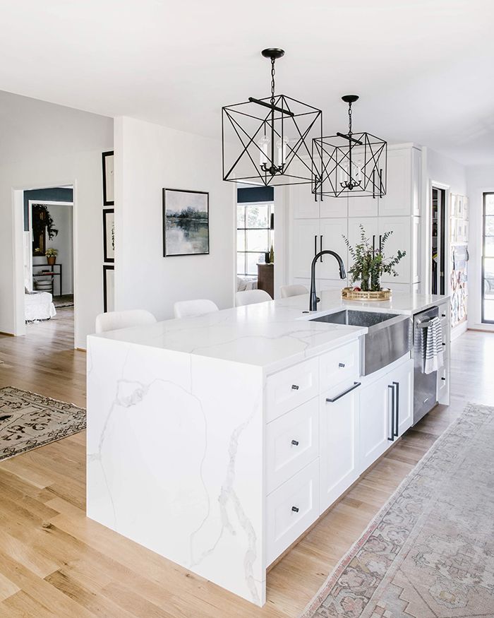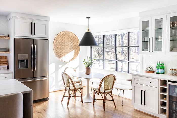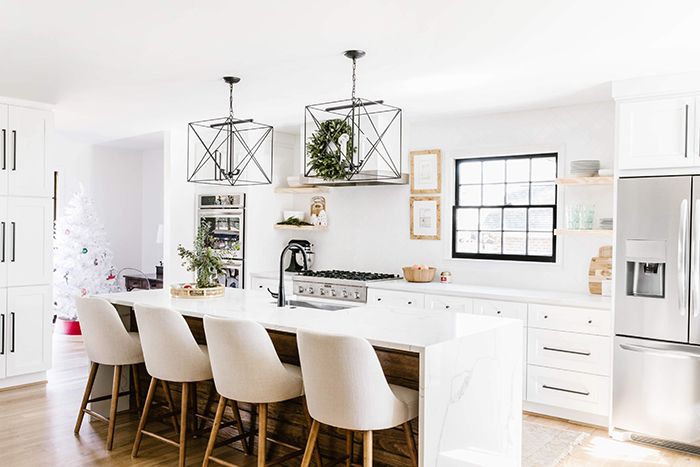 She suggests starting with what you want to splurge on and then figuring out how much you have left in the budget and where you can save. For example, she says, “In our master bathroom, I fell in love with pricier hardware. We ended up saving on mirrors and the vanity to make the faucets work.”