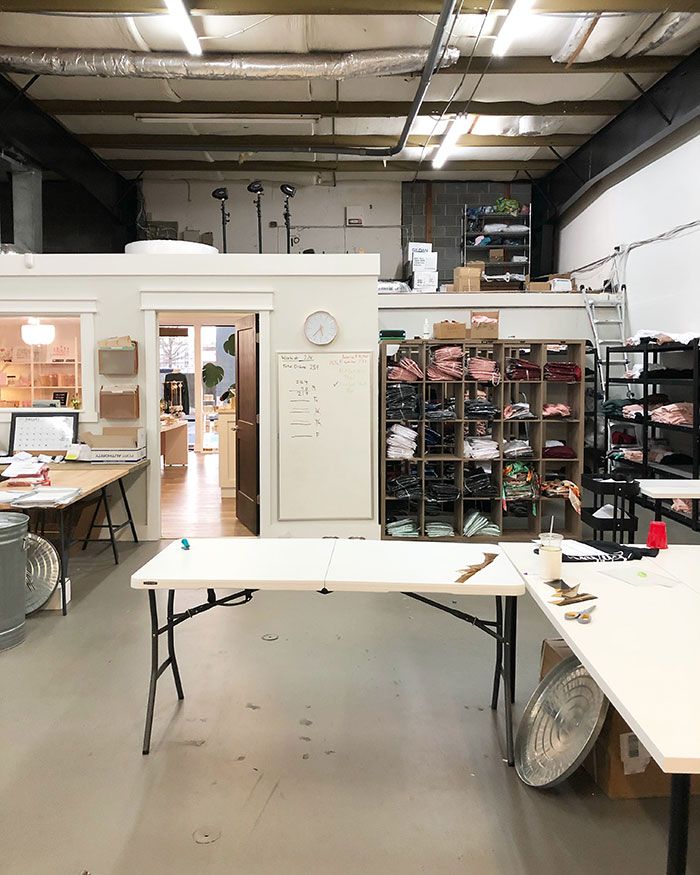 Although they had originally set out in search of a warehouse operation, they lucked out with a space that could double as a production facility in the back and a retail boutique in the front.
