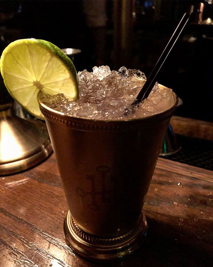 And The Wolf is Room 1812’s take on a Moscow Mule with Absolut Lime vodka, fresh lime juice, ginger beer and a rotating seasonal flavored syrup. This is one that comes with the mallet-whacking crushed ice production.
