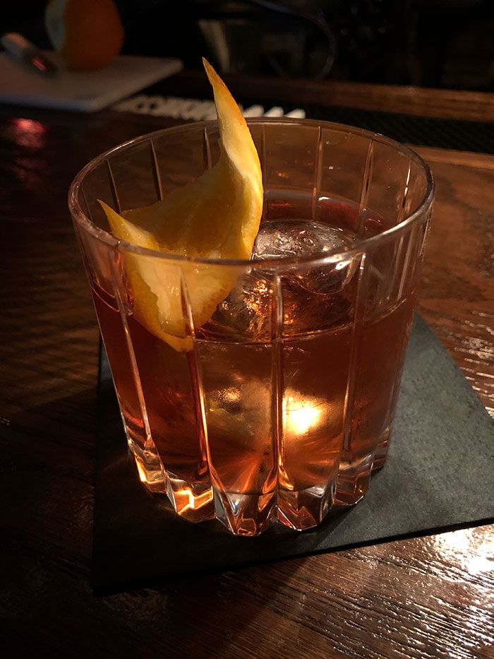 This is very much a show bar with some performative cocktail prep going on, the kind of place where the making of your drink is as much a part of the experience as drinking your drink. Crushed ice, for example, is made by dropping a block of ice in a bag and whacking it with a wooden mallet.