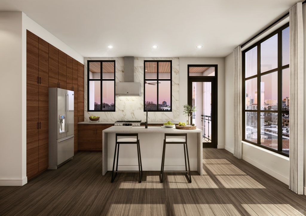 Finishes: Luxury is a word thrown out by everyone these days, but this building truly embodies that experience. The units will have beautiful wide-plank flooring reminiscent of European oak and expansive warehouse-style windows. Kitchens include state of the art French-door refrigerators, gas ranges, custom walnut cabinetry, brass and black hardware and quartz countertops. The bathrooms will have luxurious freestanding soaking tubs and even a separate toilet room.