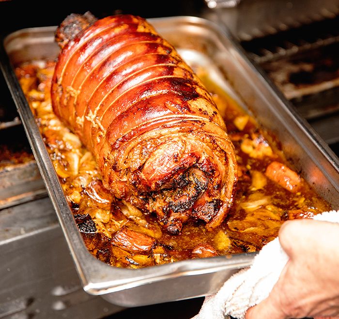 Buffet spread: Oven roast porchetta, roast leg of lamb, chicken bianco, salmon arrostiti, penne alla vodka, ravioli, baked ziti, turkey-prosciutto meatballs, gnocchi, scrambled eggs, applewood smoked bacon, biscuits, stuffed french toast, mozzarella bar, grilled veggie platter, salads and desserts.