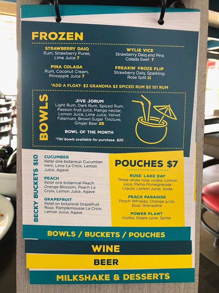 Behind the bar, you can expect playful pouches, La Croix Becky Buckets, tiki cocktails, large-format shareable bowls and frozen beach drinks.
