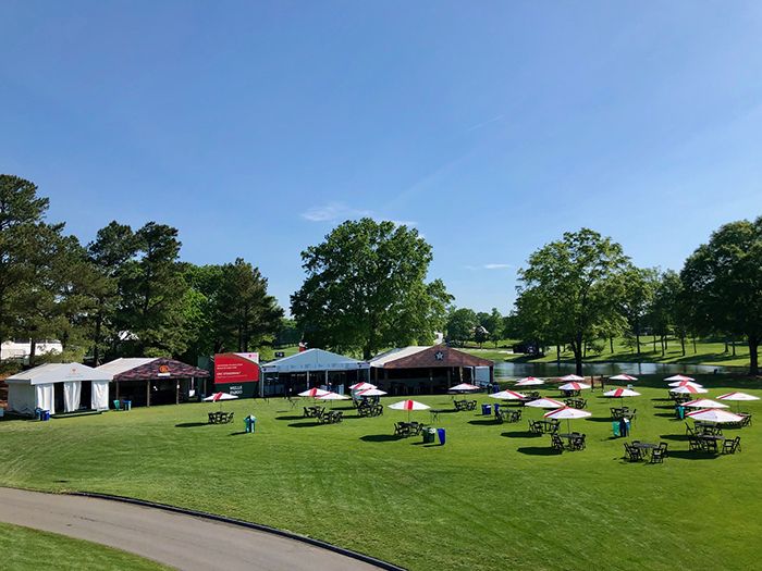 I recommend going with a dog from JJ’s Red Hots (located on Event Hill near the 18th green) or grabbing food from one of the food trucks on the 16th fairway.