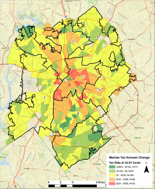 Every eight years, Mecklenburg County goes around and puts a new price tag on everybody’s property. This is one of those tax revaluation years, and the economy has boomed since the last time this happened. That means most properties are now worth considerably more than they were being taxed on.