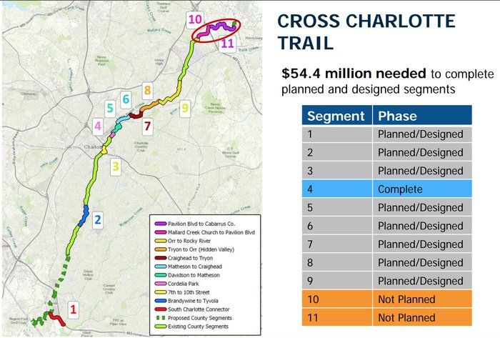 - $54.4 million to complete the parts of the Cross Charlotte Trail that have already been designed. This would not include the northernmost section of the trail.