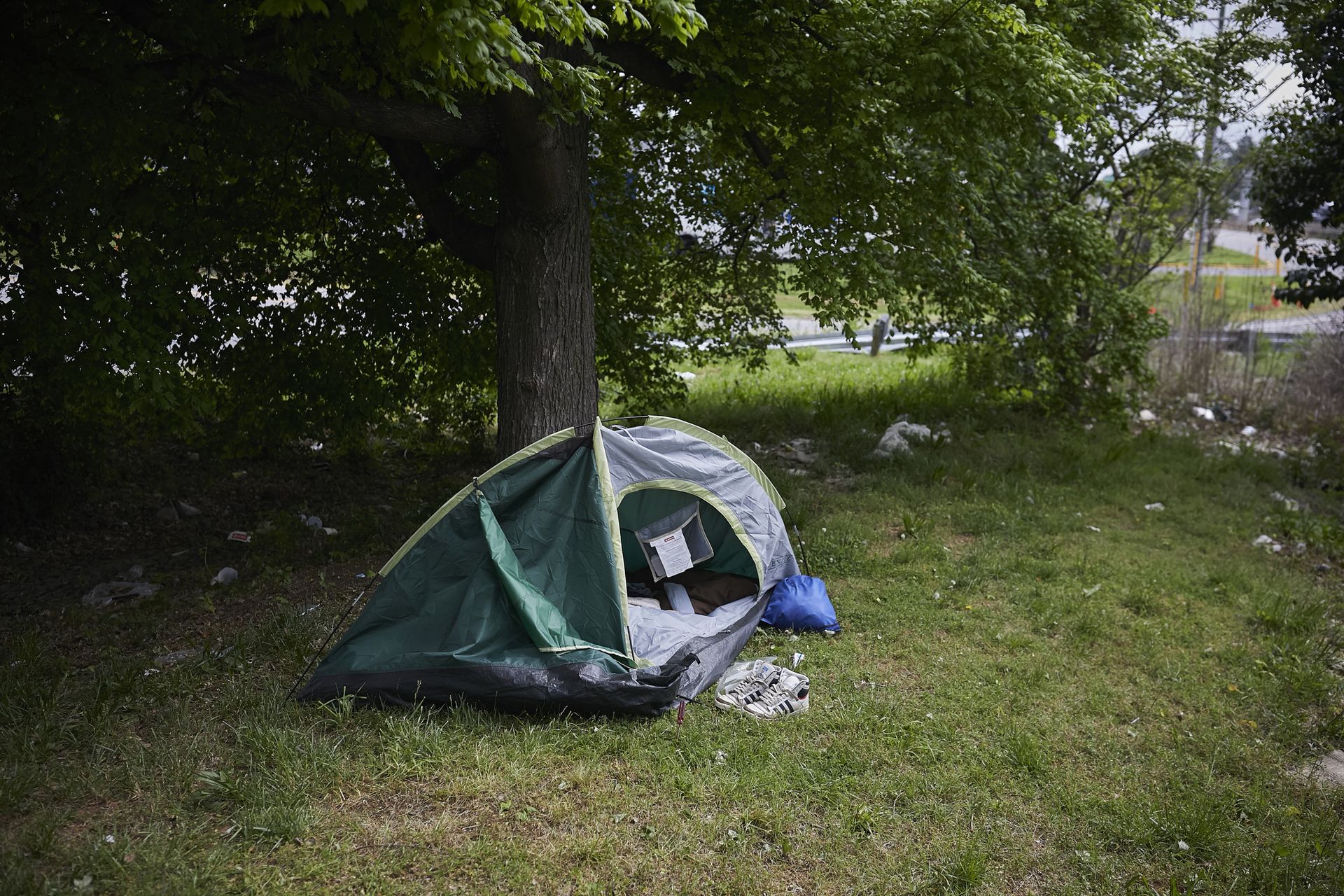Patrick’s a favorite, though. When he enters the store that Thursday in April, he’s 31 years old and lives with his girlfriend in a green tent in the curl of the southbound ramp of 85.