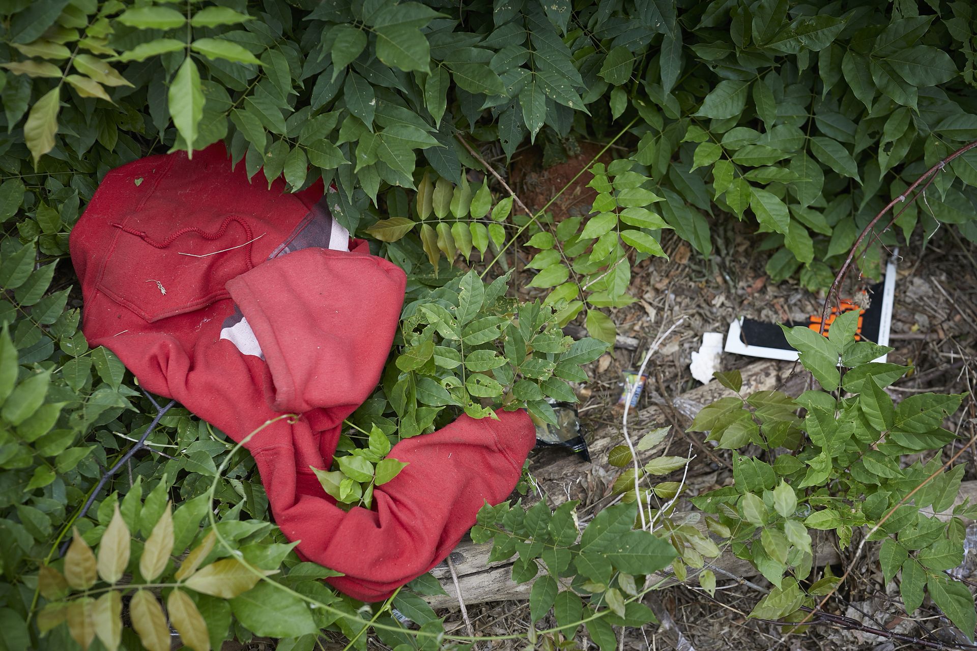 Gallant and Ellis drive past the spot where Patrick had his tent. There’s still a set of high-tops outside of it, along with one of those blue drawstring backpacks.