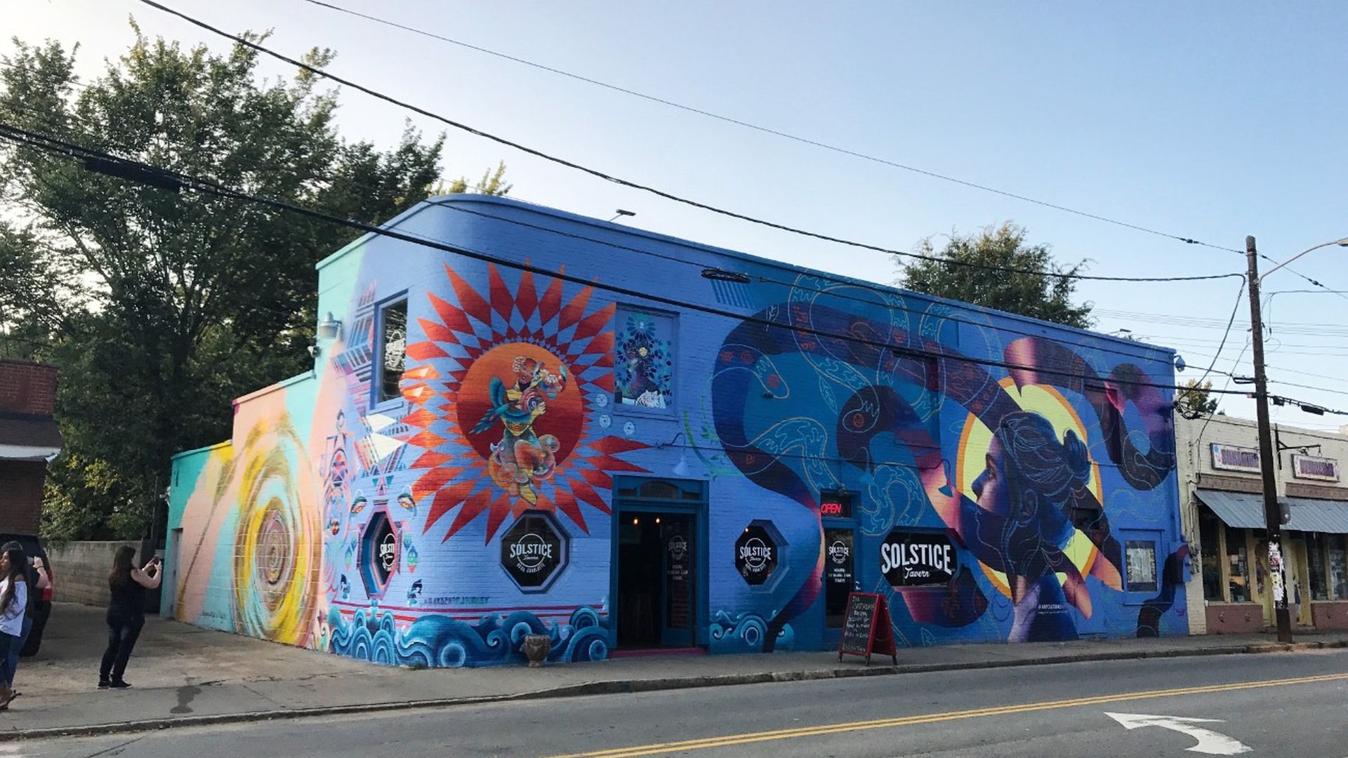You’ll find a number of eye-catching murals in the neighborhood including The Fibonacci by Jonay Di Ragno on the former Solstice building, William Puckett’s piece on Jack Beagle’s and several works by Nick Napoletano.