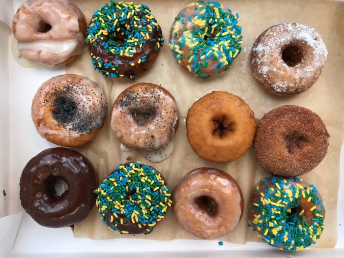 Reigning Doughnuts serves the sweet treats out of a repurposed storage closet behind Growlers Pourhouse. Just look for the mint green shutters.