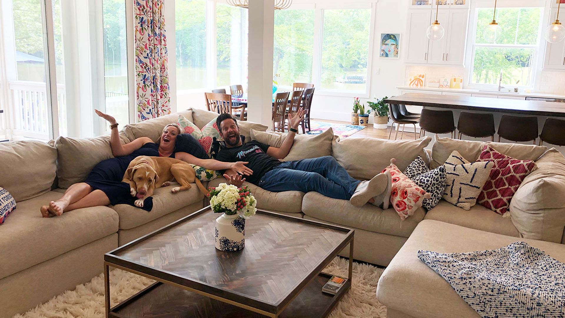 Fehling-Sized Seating: The Fehlings are a larger than life family — literally in that they’re very tall and figuratively in that they’re bursting with personality — so they wanted a huge couch where everyone could fit. They found it at Value City Furniture.