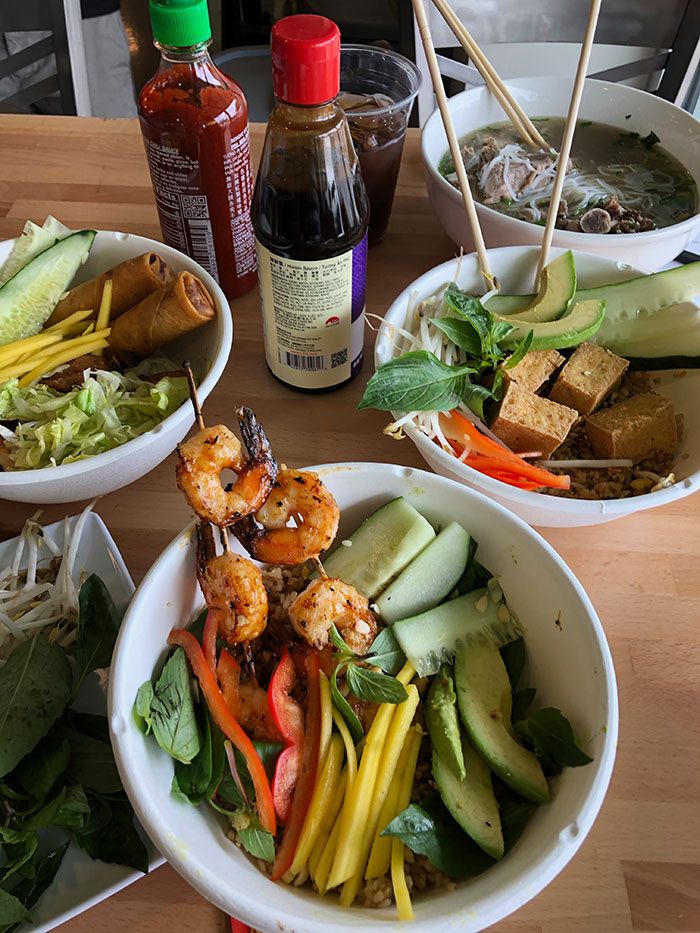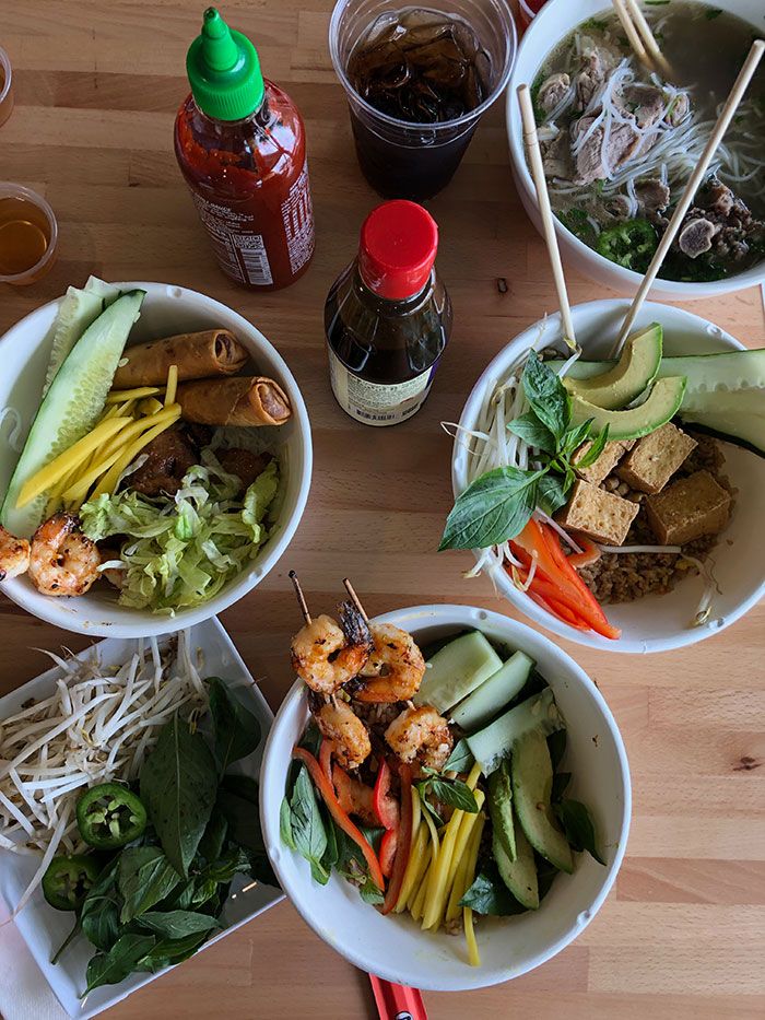 The menu features customizable rice and noodle bowls, banh mi and fresh rolls along with signature pho.