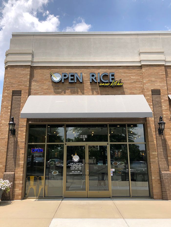 Open Rice is located at 9882 Rea Road in the Blakeney Shopping Center and is open for lunch and dinner service daily.