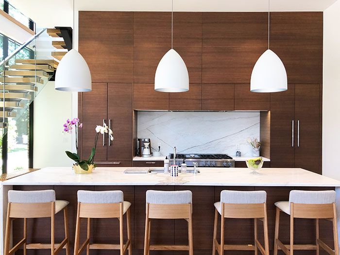 Lighting: All those windows allow for plenty of natural light but they can’t be open all the time. A high-tech Lutron shade system controlled by remote or mobile app lets the Troutmans easily manage privacy and energy conservation. When the sun isn’t the main source of light, simple, clean light fixtures from Lighting & Bulbs Unlimited do the job.