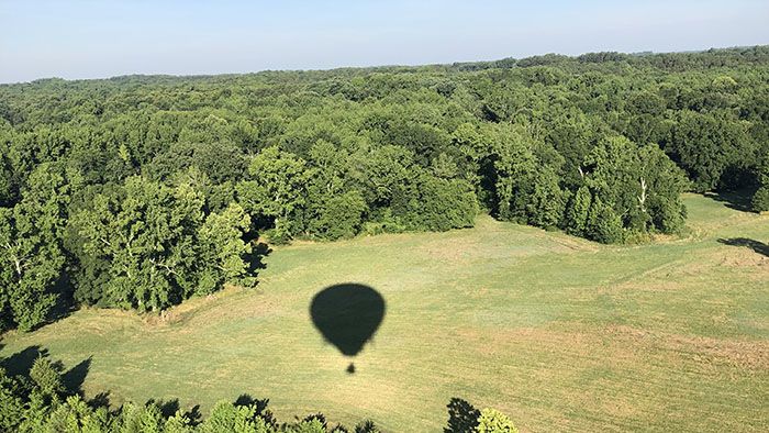 Robert does a huge analysis of the wind to plan where you will take off and where you’ll potentially land. He has a relationship with almost everyone that lives in the area, so his landings are usually on properties of people he knows. Since he can not steer the balloon’s direction, it is truly up to chance where you end up landing. A chase team (his wife Peggy) is in a truck below following the balloon with a GPS system to make sure they can find you when you land.