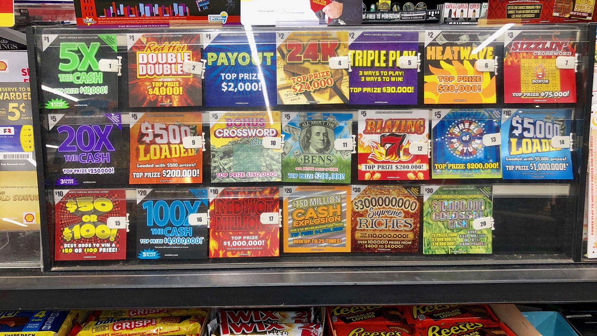 Market size: Last year, total North Carolina lottery ticket sales were a whopping $2.86 billion (up from $2.6 billion the year before). Scratch-offs are just a part of this number, but it’s safe to say that this is a big, growing market. Here’s a full list of over 80 N.C. scratch-offs games, ranging from the $1 “Red Hot Double Doubler” game to the $30 “Supreme Riches” game.