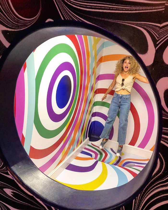 - Jill Seale – Colorful rings create the illusion of a portal to another dimension on the floor. Jump in.
