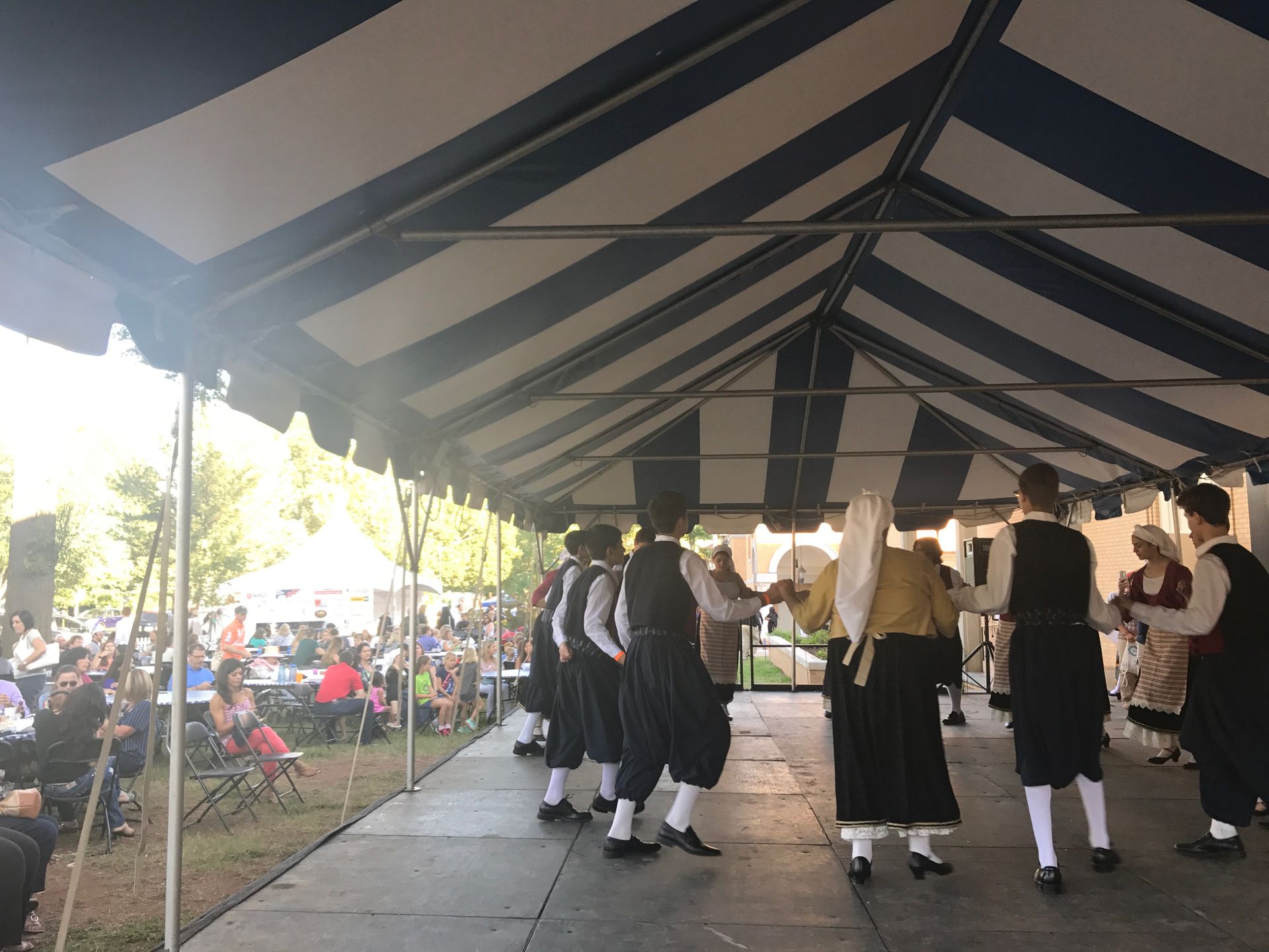 Folk Dancing and Live Music: Two stages (one in the front near the entrance and one in the back) will feature live performances throughout the festival. Grabbing an outdoor table so you can watch while you eat is a pro move. See music and dance schedule.