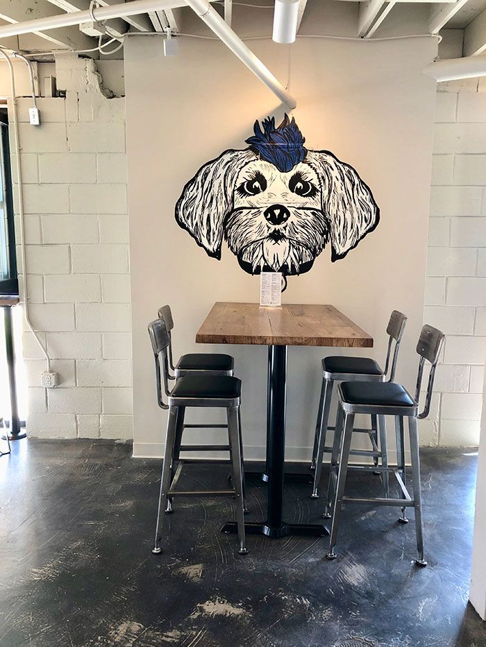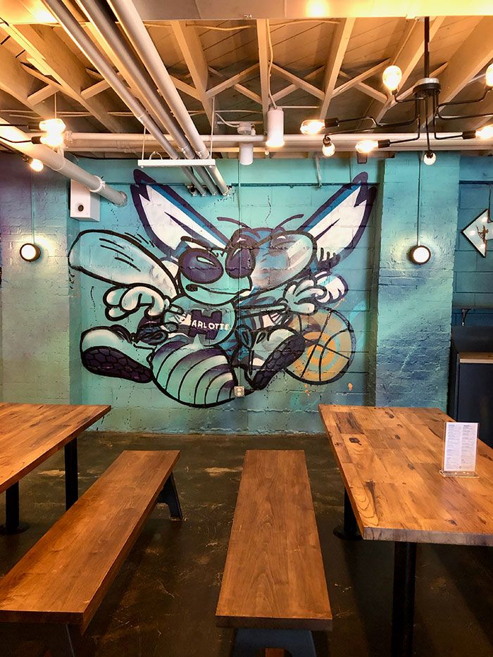 Husband and wife owners are Jay and Ashely Gasbarro have been working on the concept for more than five years. Kellie McCann will be the GM and Harry Pappas will manage the kitchen. The Gasborro’s dog Tucker is he’s famous in South End for repping a Panthers blue mohawk and now serves as the QC Pour House mascot. You’ll find him painted on the wall and emblazoned on QCPH merch designed in partnership with 704 Shop.