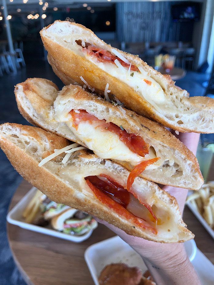 - Pepperoni hand pie ($11.50) – Stuffed with mozzarella and pepperoni with a side of marinara sauce