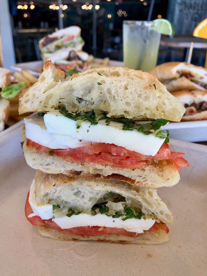- When in Rome ($10.50) – Fresh mozzarella cheese, tomato, basil, olive oil and Italian seasoning on a baguette