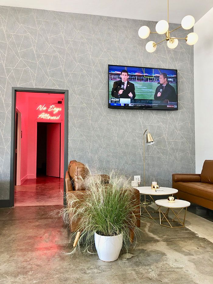 Design: Although he says the bar is certainly inclusive for everyone, Botero built it around feminine design features specifically to appeal to women. This includes greenery walls, flowers, pink velvet couches, a huge full-length mirror in the bathroom and even a “No boys allowed” neon sign.