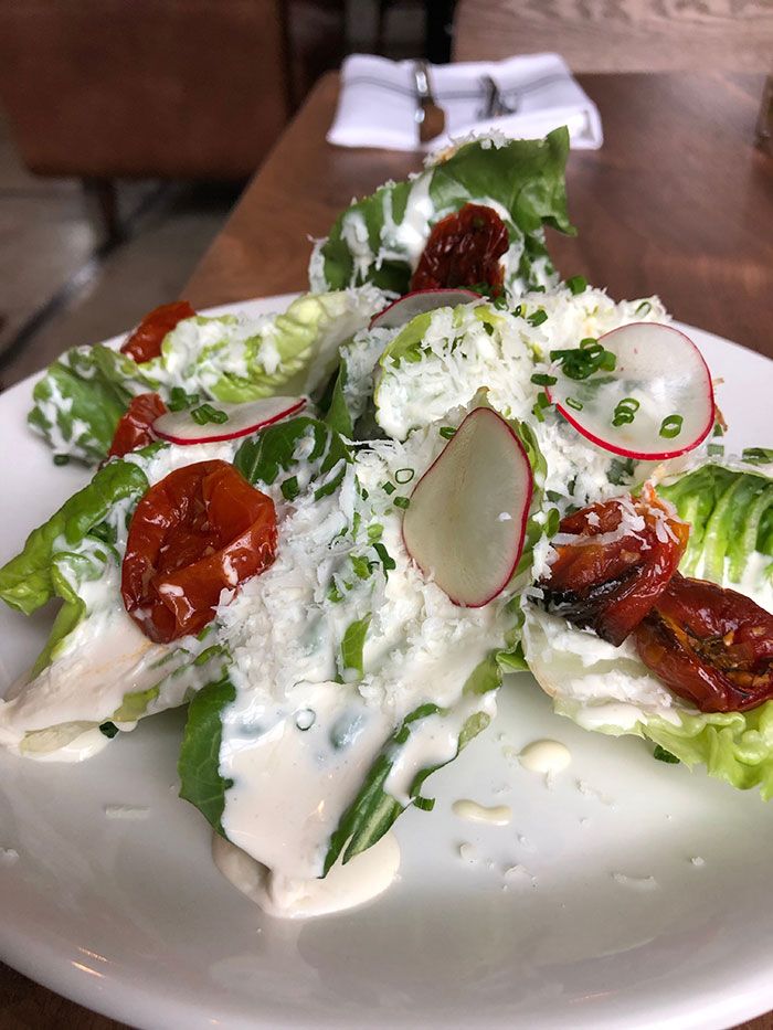 - Little gem salad ($8) – slow-roasted tomato, radish, pecorino