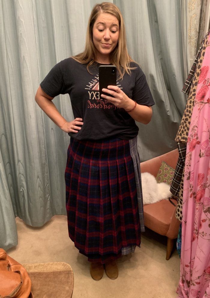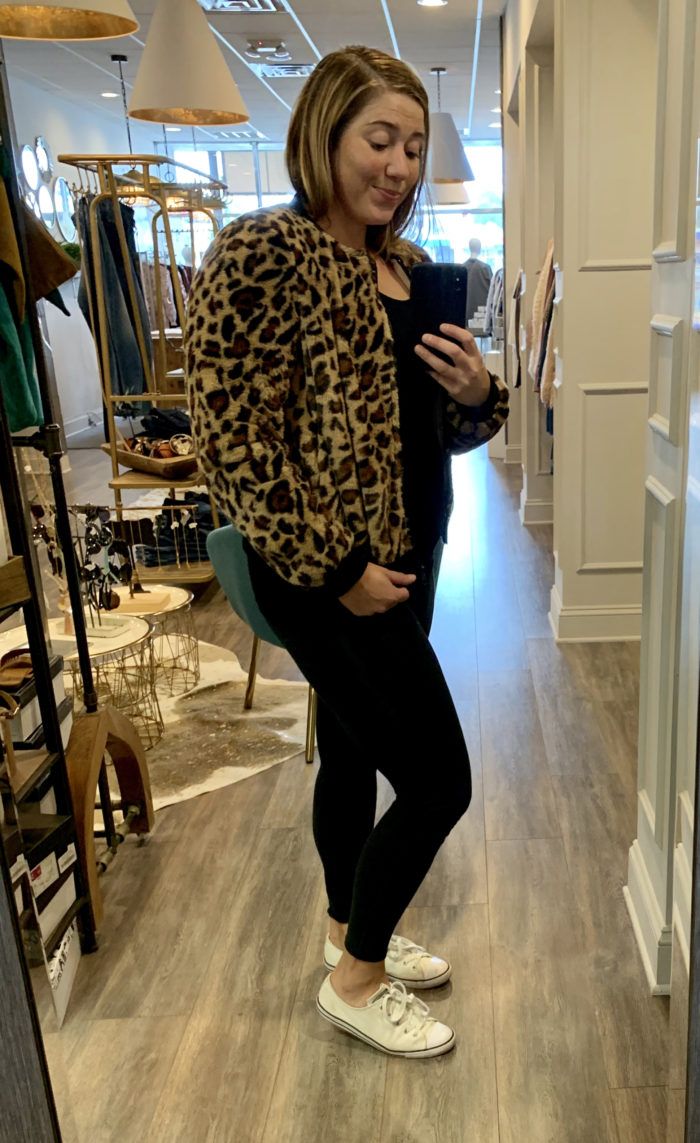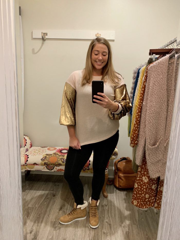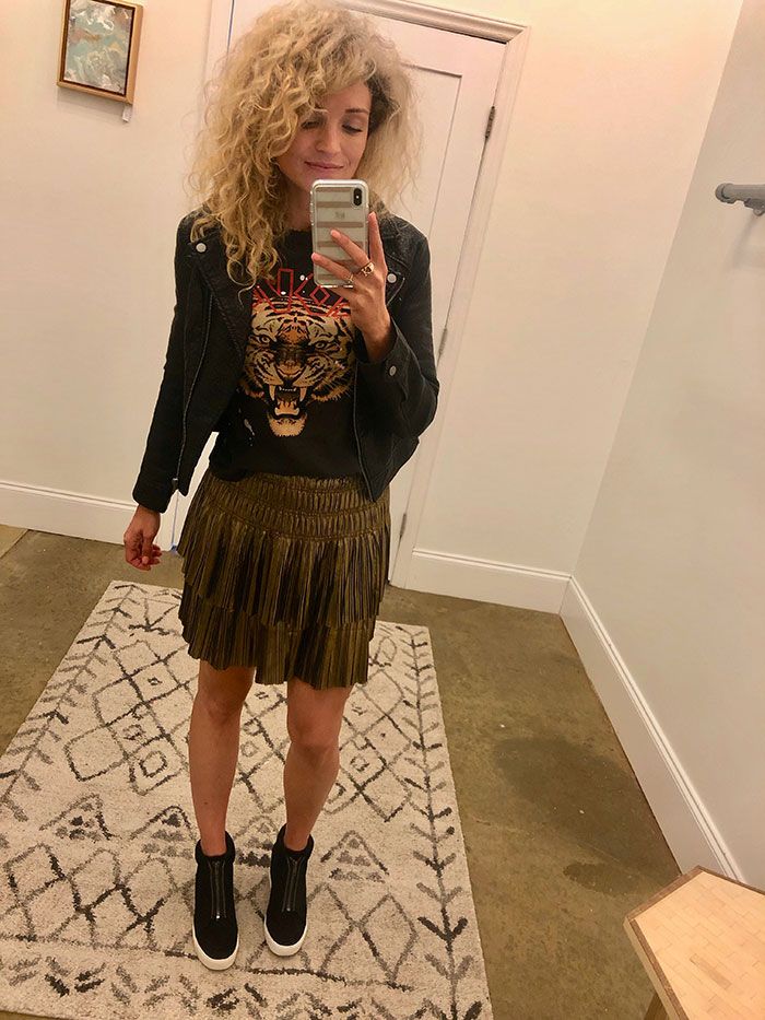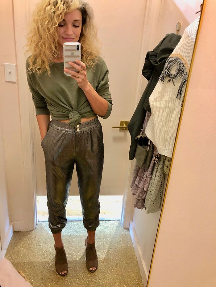 Here’s how it comes together: Katie pores over runway reviews to see which trends are big for fall (according to actual fashion editors), texts a condensed list of trends to Mary, and then we drive around to local boutiques to see how that’s translating as everyday wear in a city that’s not exactly on the map as a major fashion hub.