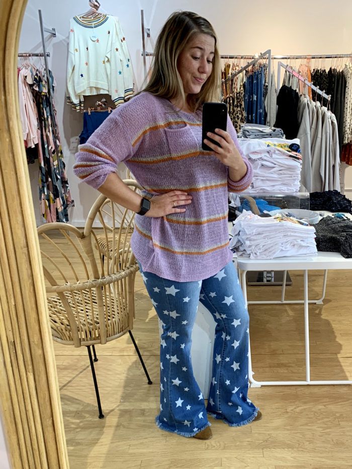 Rocketman denim, $72 and Marge sweater, $48 at Girl Tribe