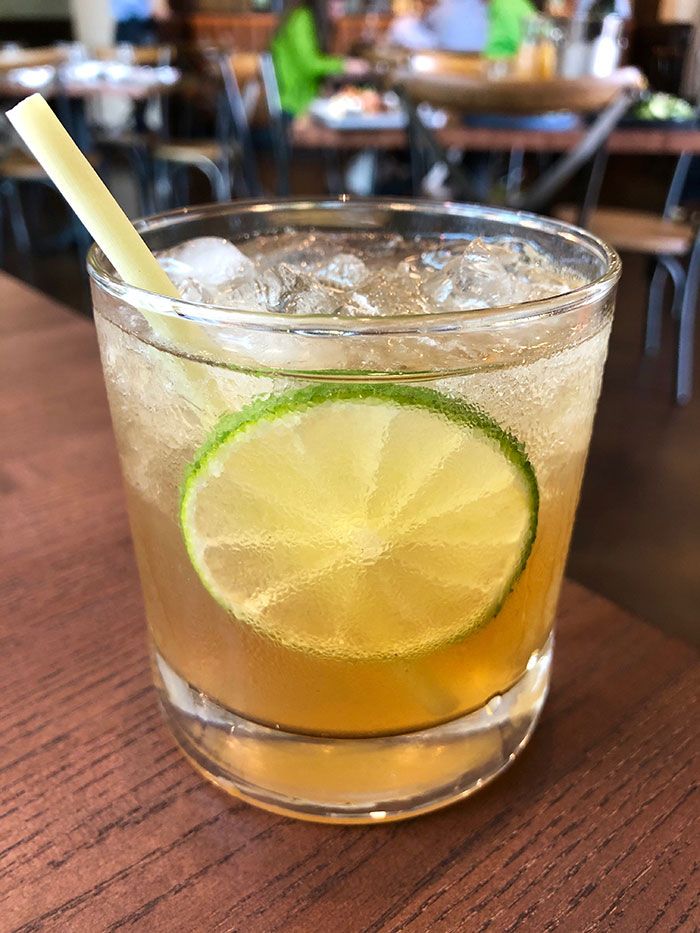 Pictured here is the Blackberry Buttons ($16), a tequila cocktail served with a Szechuan button to numb your mouth, and a lemongrass caipirinha served with a lemongrass straw.