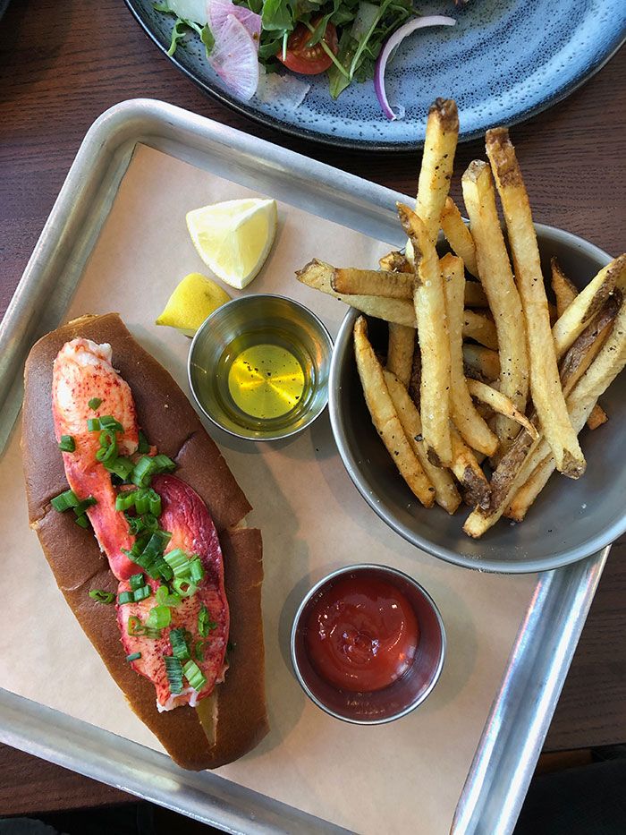 The lunch menu features mostly salads and fancy sandwiches like a $29 lobster roll, $16 oyster po’ boy and $14 Nashville hot chicken.