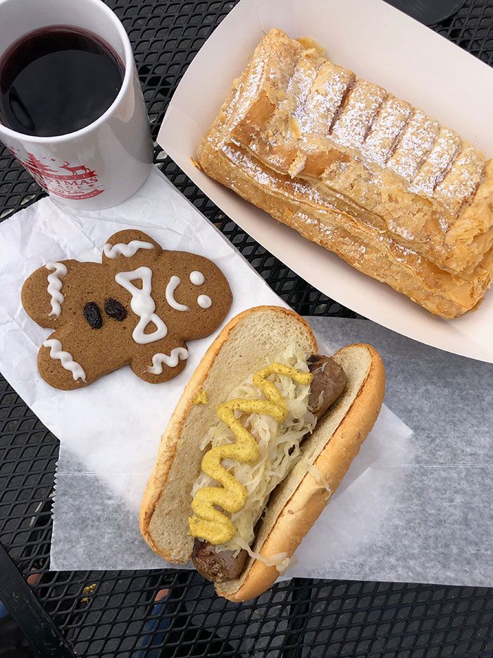 You’ll definitely want to stop by the Dover Vineyards and Red Clay Cider booth for a mug of glühwein — it’s $10 and includes a souvenir mug you can bring back for $7 refills all season.