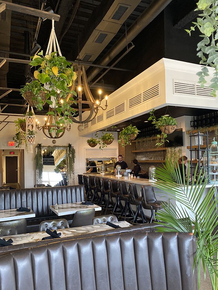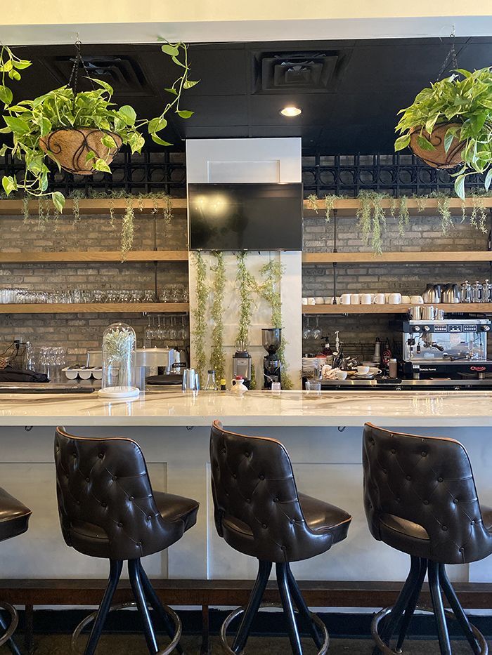 The space: Inside Easy Like Sunday, plants hang from the ceiling and vines crawl down the back of the bar. The space is intimate with seating for about 40 people in cozy booths and royal blue velvet chairs. In the spring and summer, Anna and Sean will open outdoor seating for an extra 35 to 40 people.