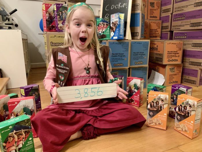 With several weeks left in cookie season, Olive has already sold 3,856 boxes of Girl Scout cookies. Last year she sold more than 2,000 boxes and won an Apple Watch. This year, she’s well on her way to winning a trip to the Girl Scout conference in Florida.