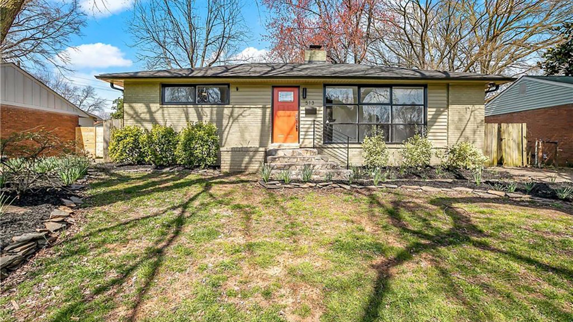 Why we love it: If the punchy front door doesn’t immediately win you over, you’ll love the cozy living room with a fireplace, traditional charm throughout, brick accent wall in the kitchen area, and neutral color palette.