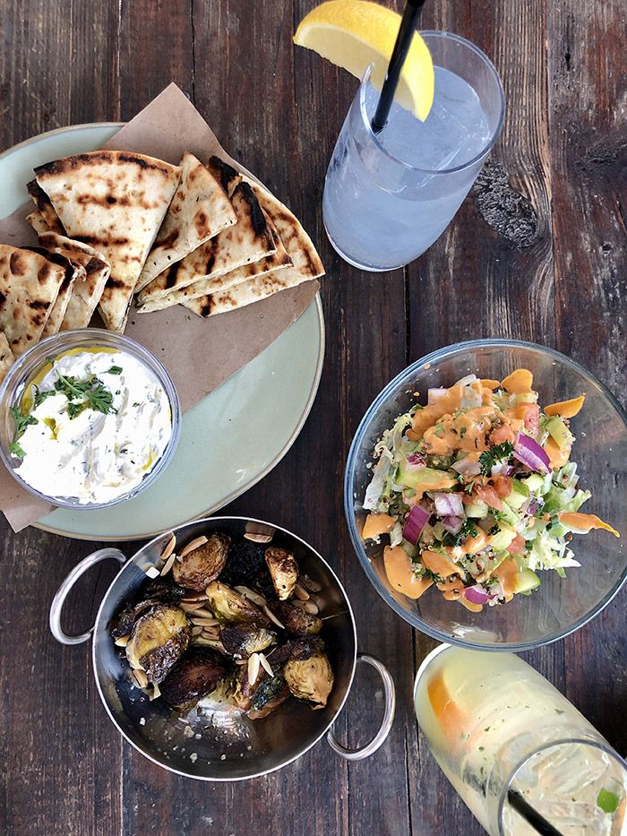 Mediterranean-focused menu with small plates, cocktails, and a dedicated vegan menu