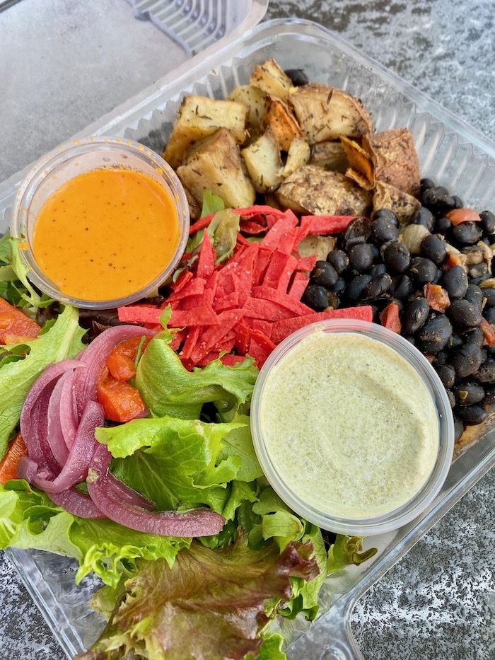 Go-to order: Roots Bowl with sweet potatoes, braised black beans, and creamy verde sauce